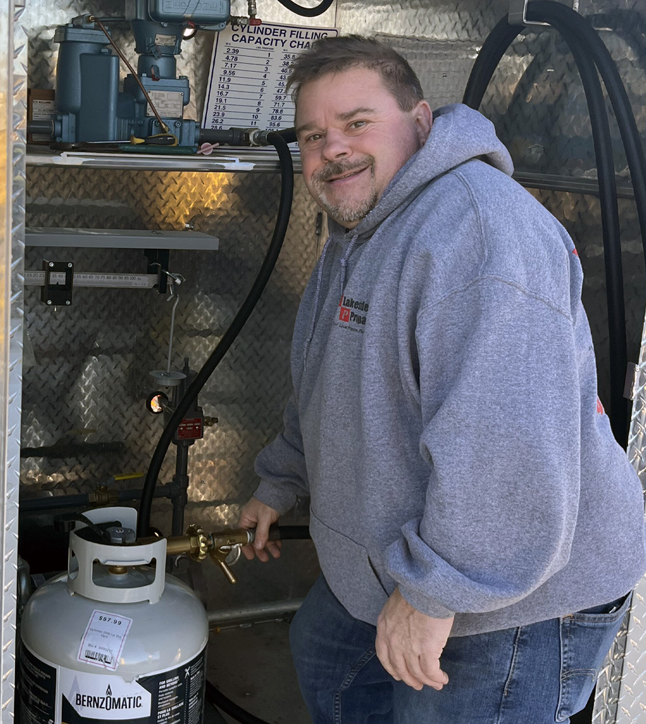 Drivers fill tanks on schedule so customers stay warm inside.